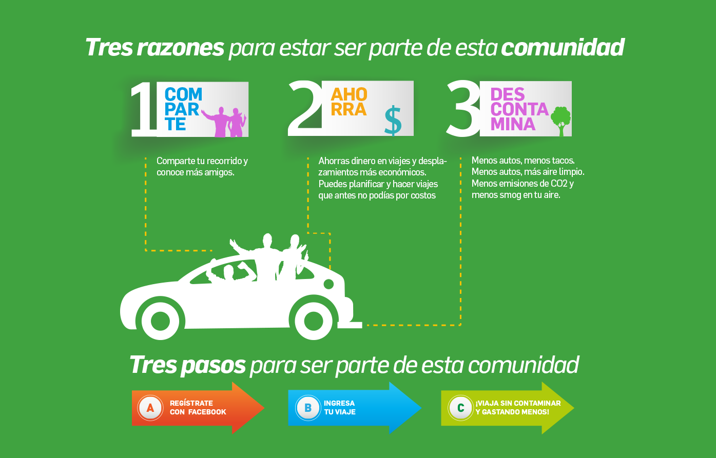 Nosfuimos.cl es una plataforma de contacto entre conductores y peatones que quieren coordinarse para compartir el auto hacia un destino en común. La web funciona mediante un registro por Facebook, o email con formulario de registro, que le facilita a los usuarios recabar información valiosa sobre sus posibles compañeros de viaje para comprobar que éstos son personas reales y con frecuente actividad en la red.